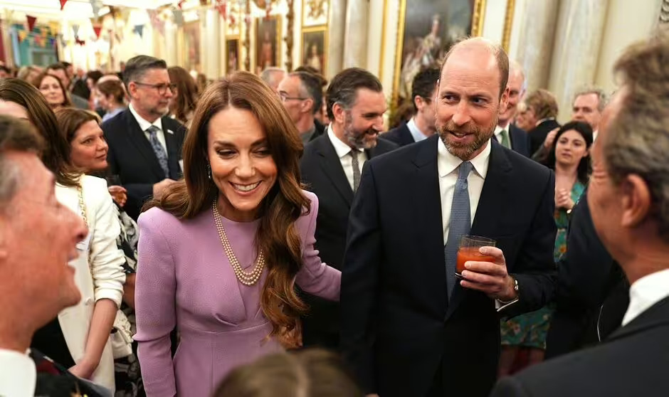 The couple joined King Charles III and Queen Camilla—who had earlier reviewed proposed designs for the late Queen’s memorial at the British Museum—for a reception held in the Marble Hall at Buckingham Palace.